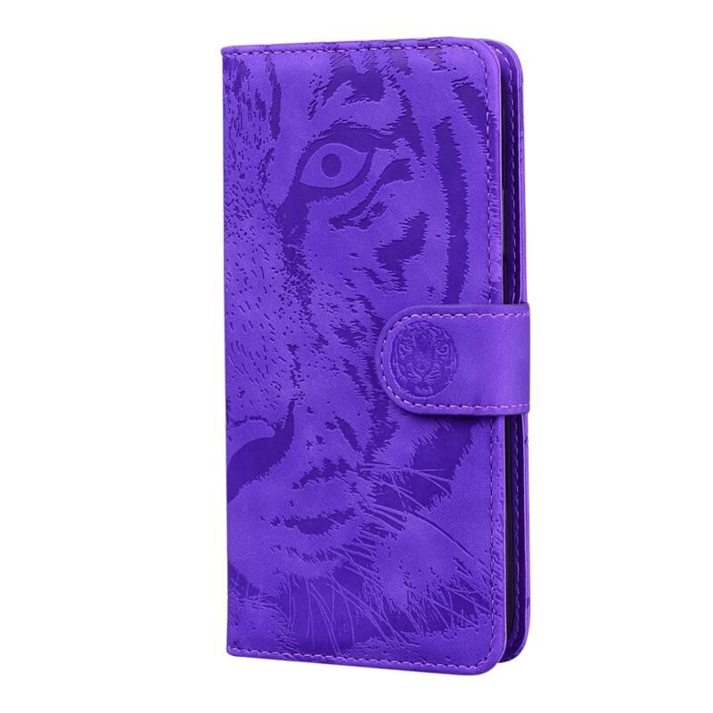 Για Motorola Edge 30 Neo / Edge 30 Lite Tiger ανάγλυφο μοτίβο Flip υπόθεση τηλεφώνου από δέρμα (μωβ)