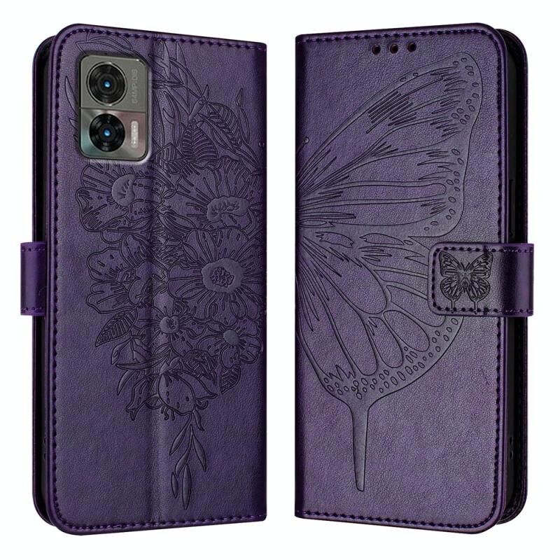 Για Motorola Edge 30 Neo ανάγλυφη πεταλούδα δερμάτινη θήκη τηλεφώνου (Σκούρο μωβ)
