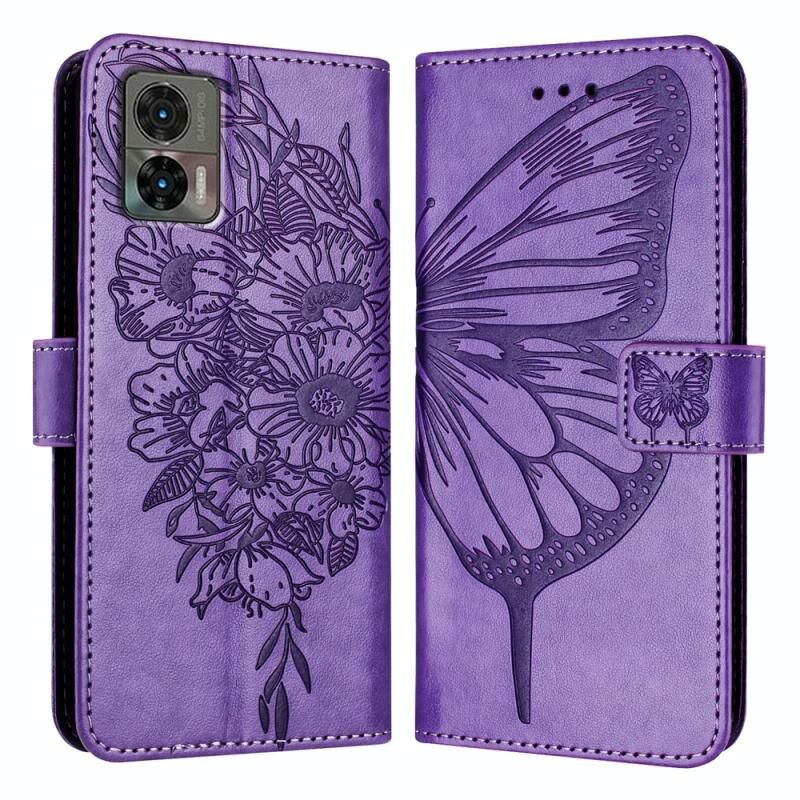 Για Motorola Edge 30 Neo ανάγλυφη πεταλούδα δερμάτινη θήκη τηλεφώνου (Μωβ)