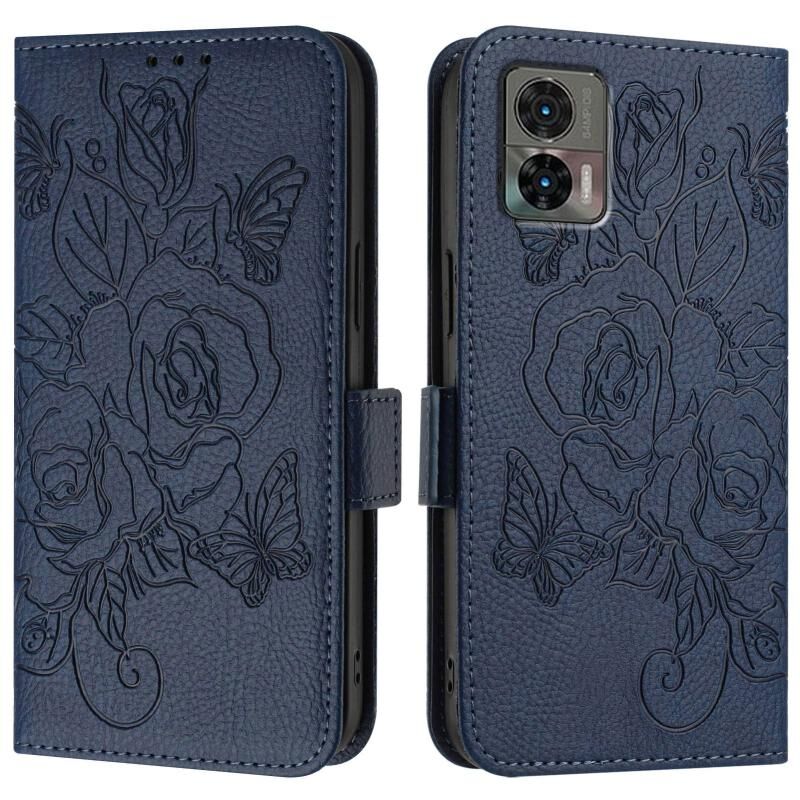 Για Motorola Edge 30 Neo ανάγλυφο Rose RFID Anti-theft δερμάτινη θήκη τηλεφώνου (Σκούρο μπλε)