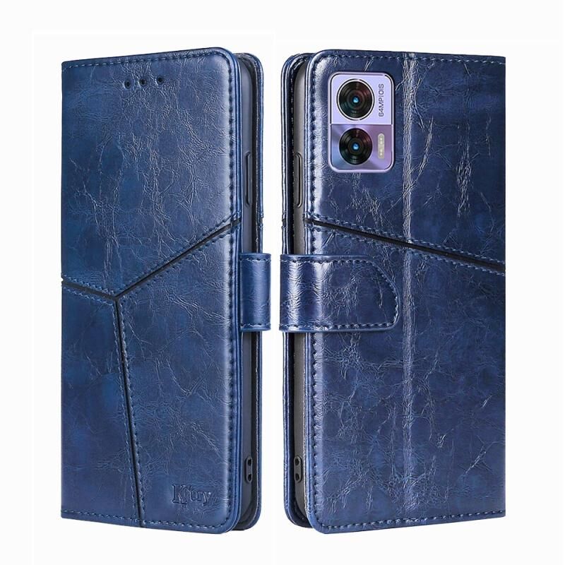 Για Motorola Edge 30 Neo Γεωμετρική ραφή δερμάτινη θήκη τηλεφώνου (μπλε)