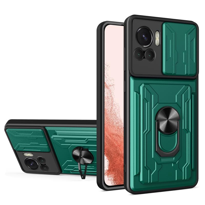 Θήκη κινητού τηλεφώνου για Motorola Edge 30 Ultra 5G / Moto X30 Pro με συρόμενο προστατευτικό κάμερας Camshield, κατασκευασμένη από TPU+PC με υποδοχή κάρτας (Σκούρο πράσινο)