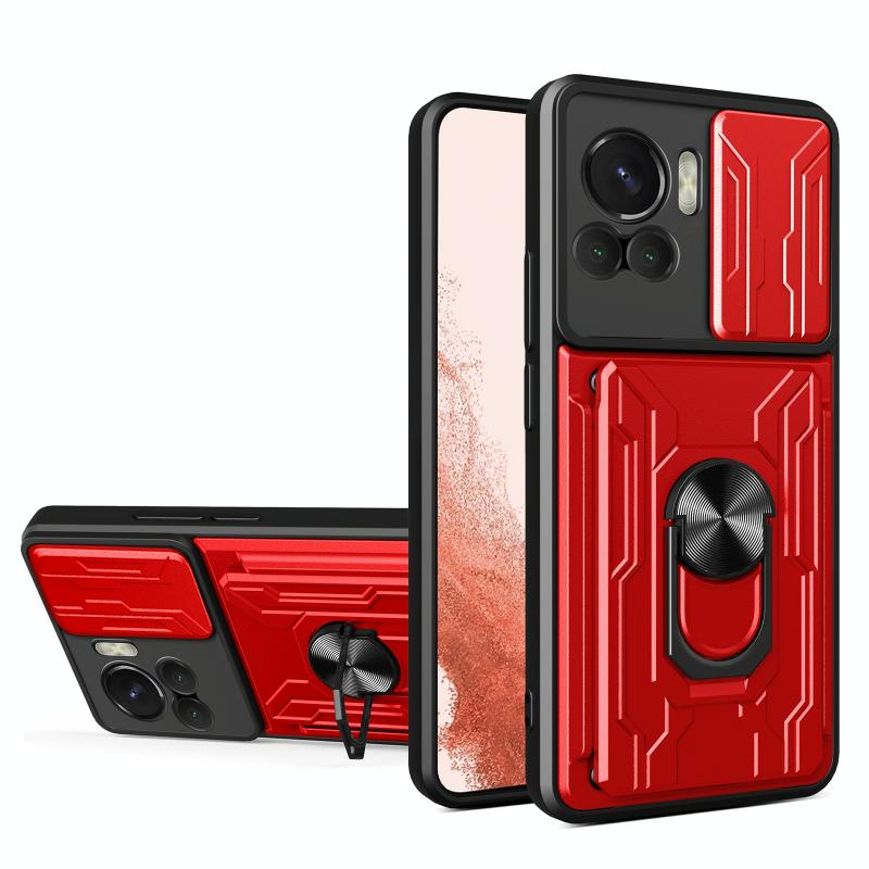 Θήκη κινητού τηλεφώνου για Motorola Edge 30 Ultra 5G / Moto X30 Pro με συρόμενο προστατευτικό κάμερας Camshield, κατασκευασμένη από TPU+PC με υποδοχή κάρτας (Κόκκινο)