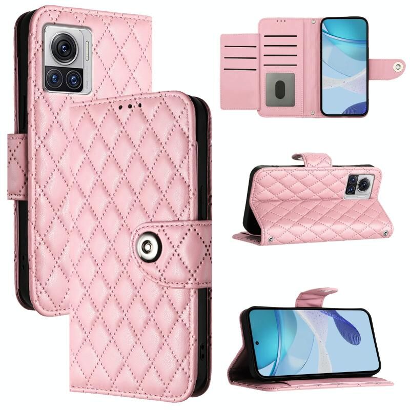 Για Motorola Edge 30 Ultra Rhombic Texture Flip δερμάτινη θήκη τηλεφώνου με κορδόνι (ρόζ)