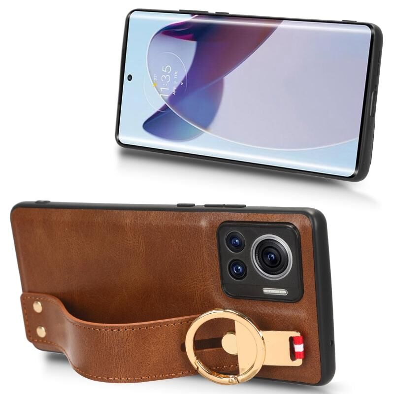 Για Motorola Edge 30 Ultra Wristband δέρμα πίσω υπόθεση τηλεφώνου (Καφέ)