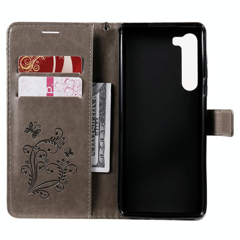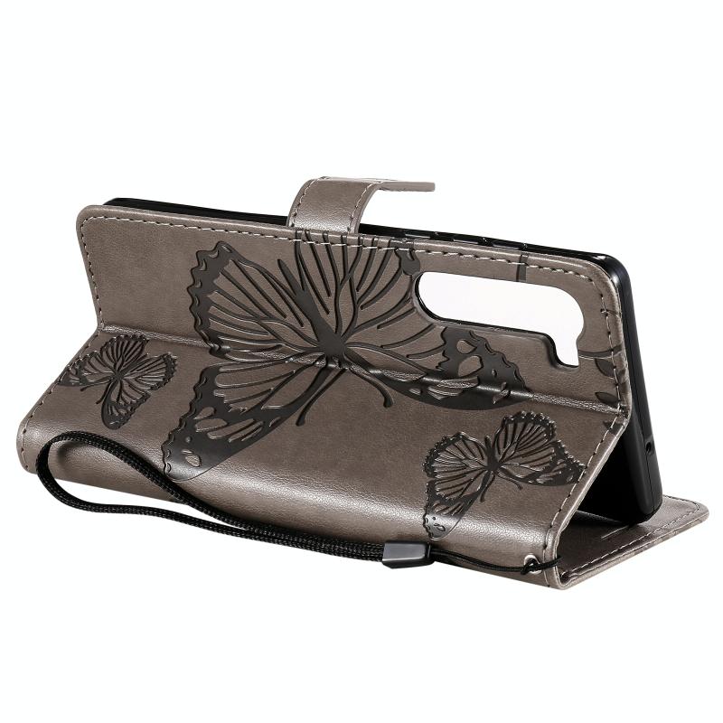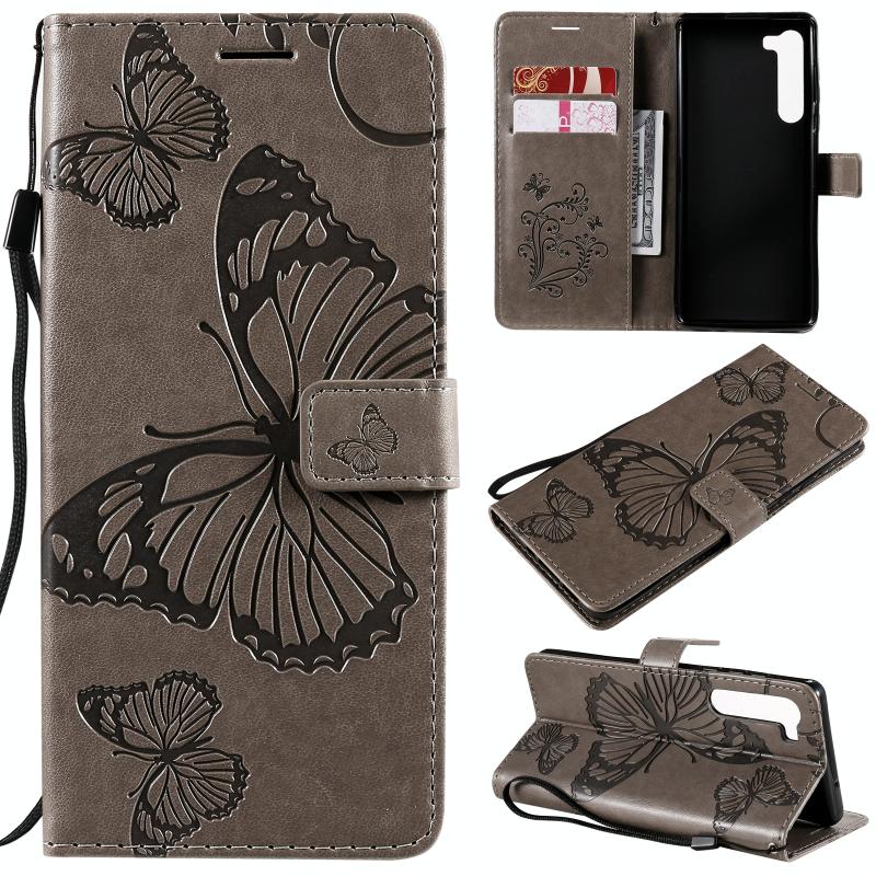 Θήκη δέρματος οριζόντιας αναδίπλωσης για Motorola Edge 3D με σχέδιο Butterflies Embossing, βάση στήριξης, θήκη για κάρτες & πορτοφόλι (Χρυσό Ρόδι)