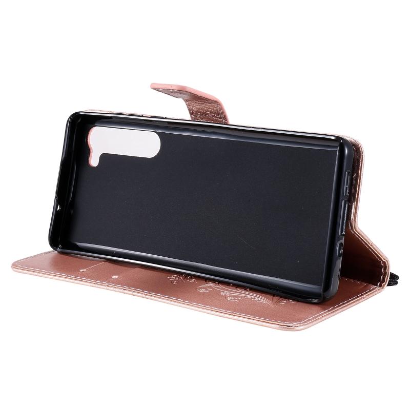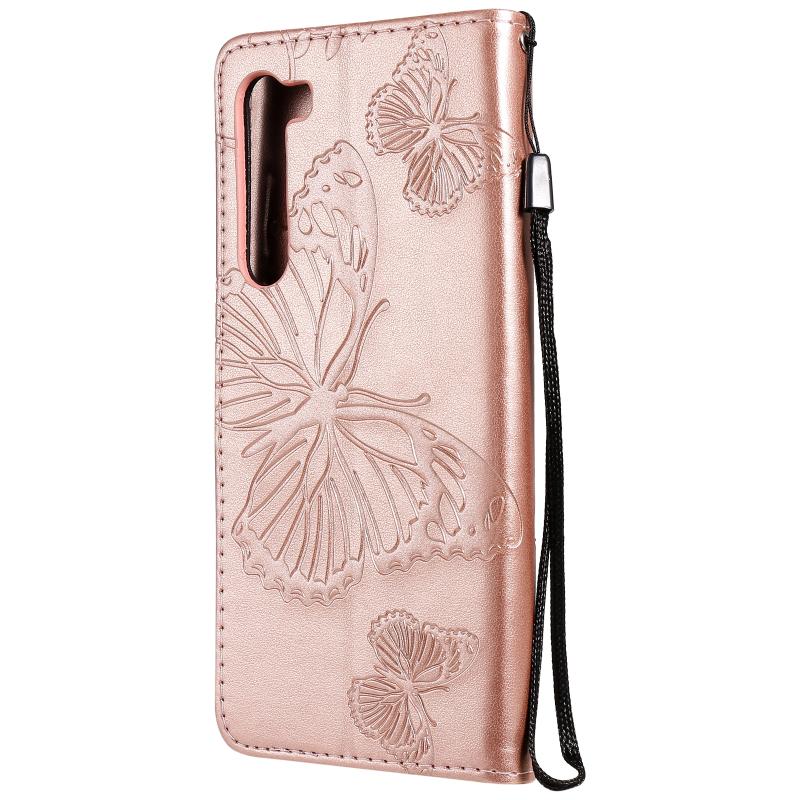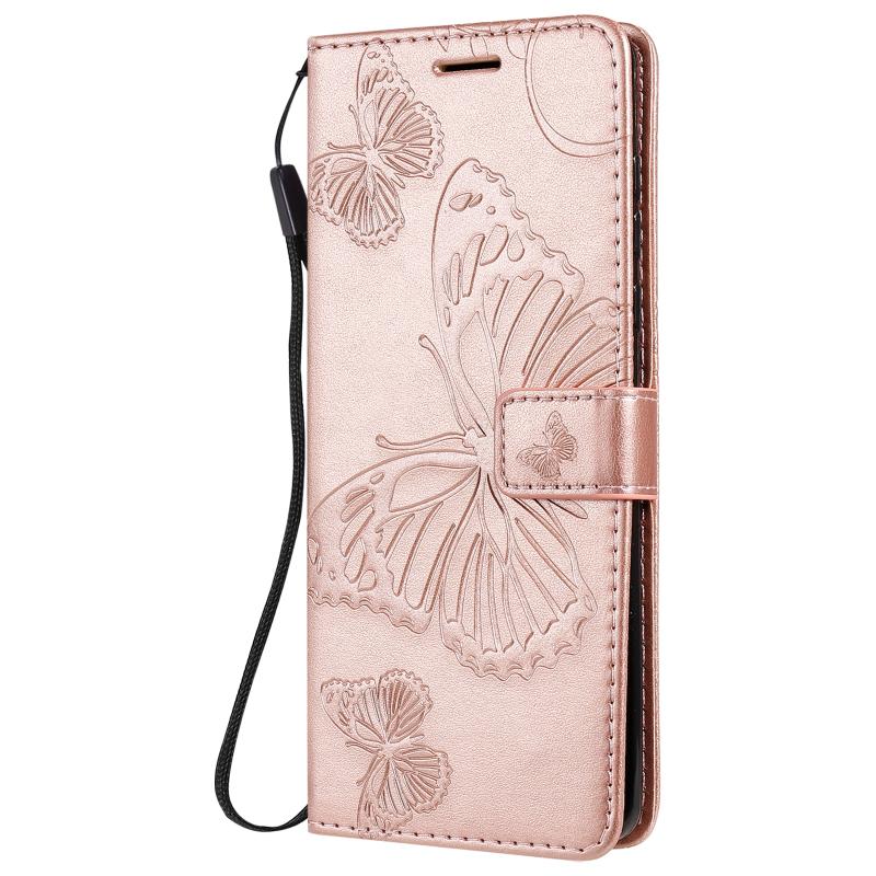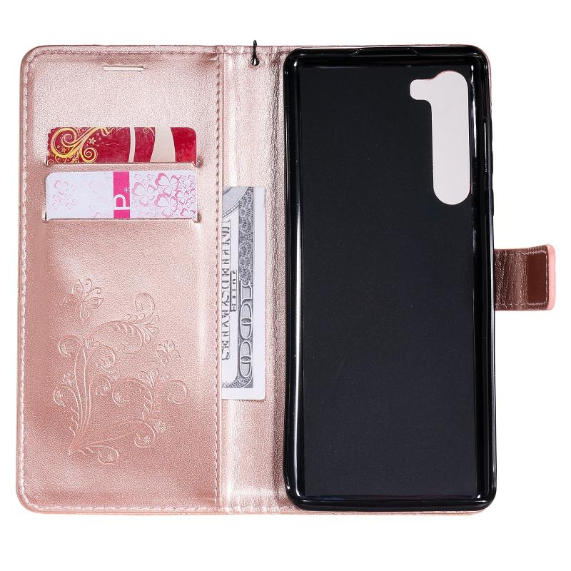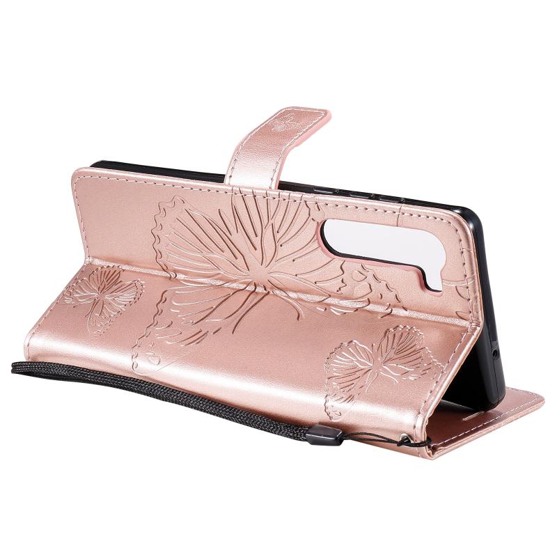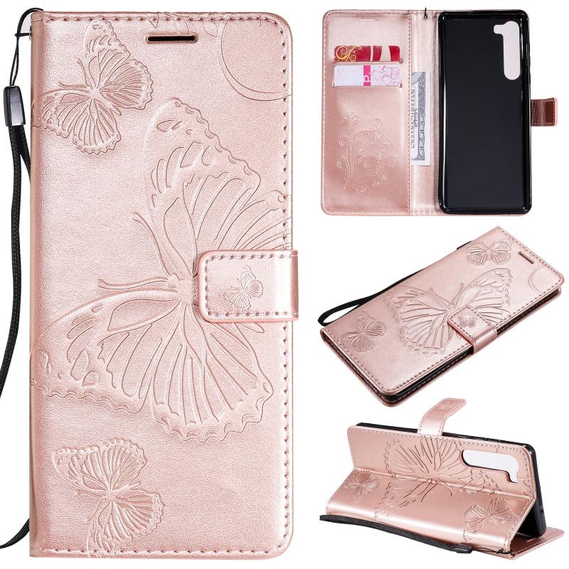 Θήκη δέρματος οριζόντιας αναδίπλωσης για Motorola Edge 3D με σχέδιο Butterflies Embossing, βάση στήριξης, θήκη για κάρτες & πορτοφόλι (Χρυσό Ρόδι)