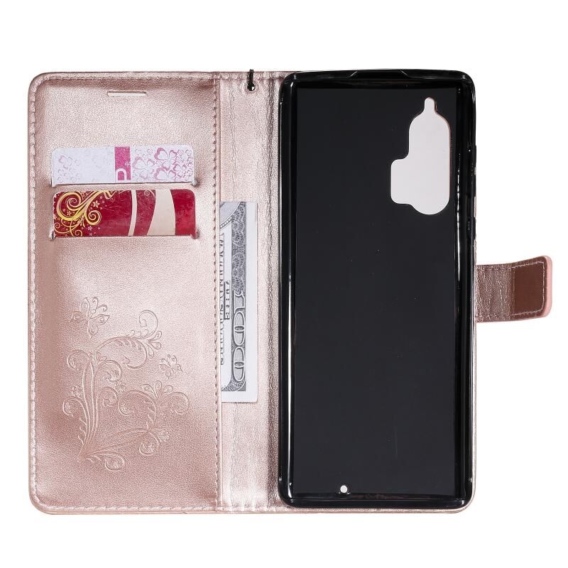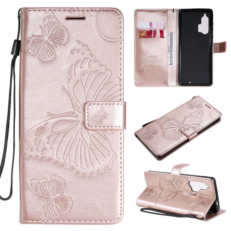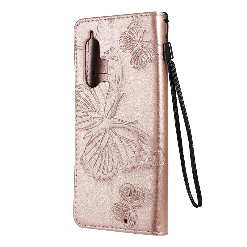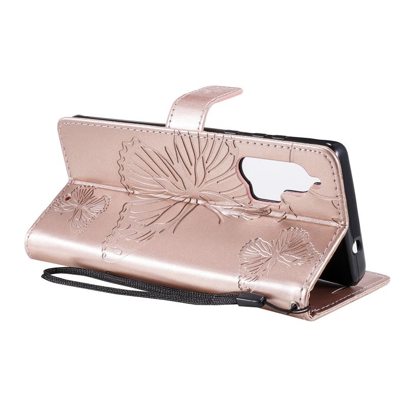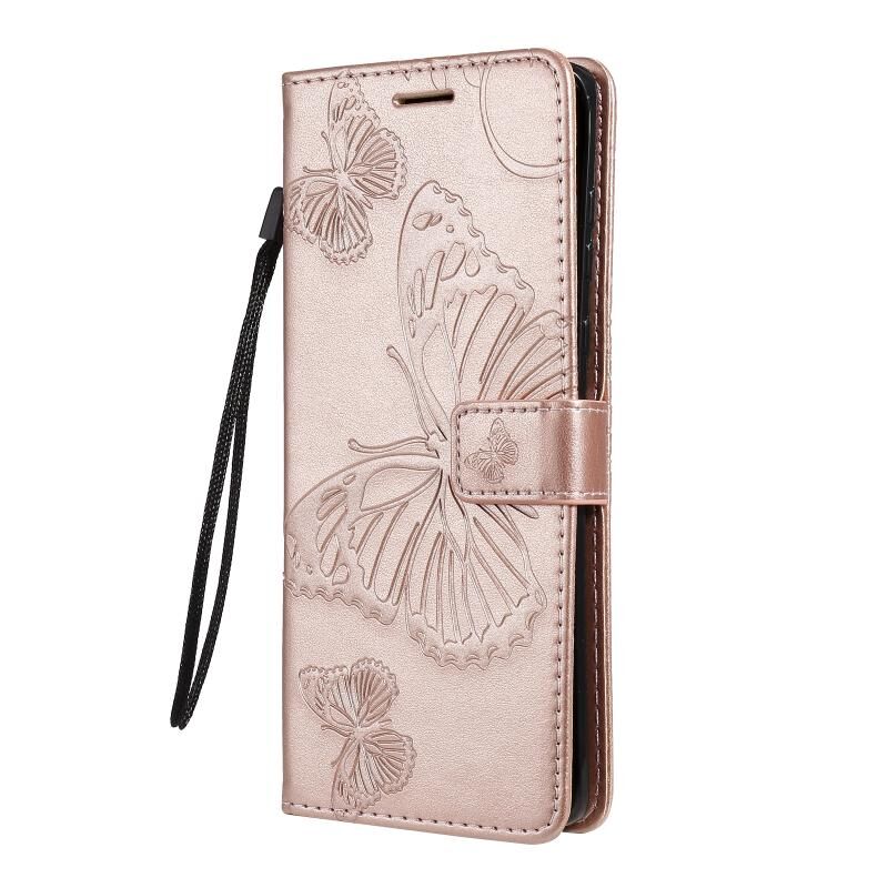 Θήκη δέρματος οριζόντιας αναδίπλωσης για Motorola Edge+ με ανάγλυφο σχέδιο 3D πεταλούδων, με βάση & υποδοχή κάρτας & πορτοφόλι (Χρυσό Ρόδι)