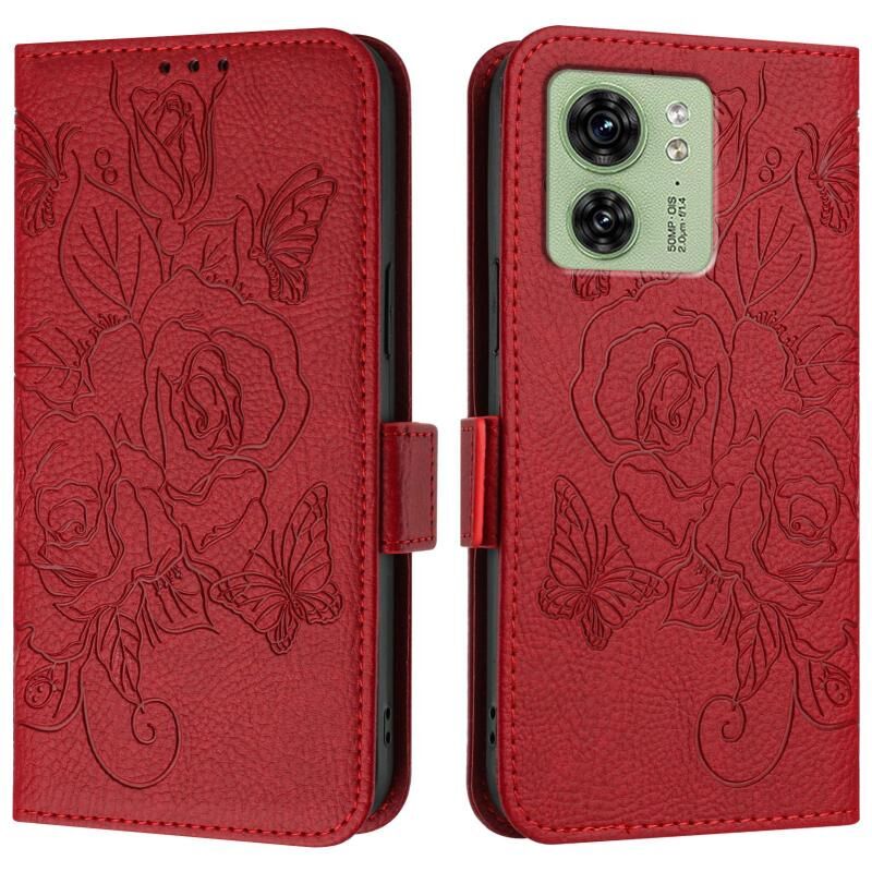 Για Motorola Edge 40 5G Ανάγλυφο Rose RFID Anti-theft Δερμάτινη θήκη τηλεφώνου (κόκκινο)