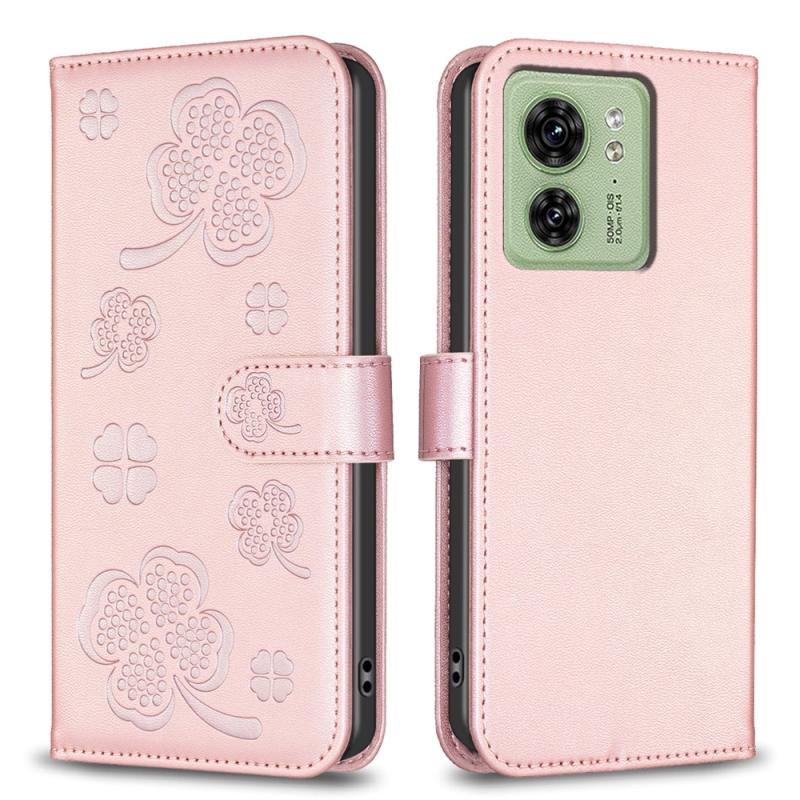 For Motorola Edge 40 5G Four-leaf Embossed Leather Phone Case(Pink)