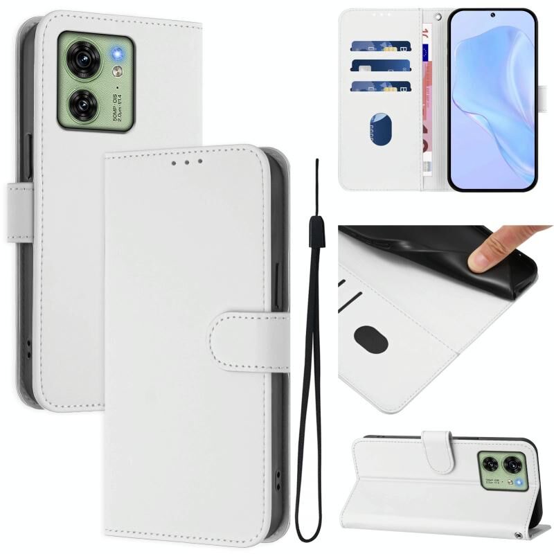Για Motorola Edge 40 5G Global Skin Feel Solid Color Leather Phone Case με κορδόνι (λευκό)