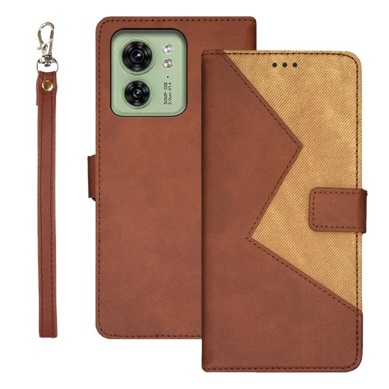 Για Motorola Edge 40 5G idewei Δερμάτινη Θήκη Τηλεφώνου με Διχρωμία (Μπλε) (Καφέ)