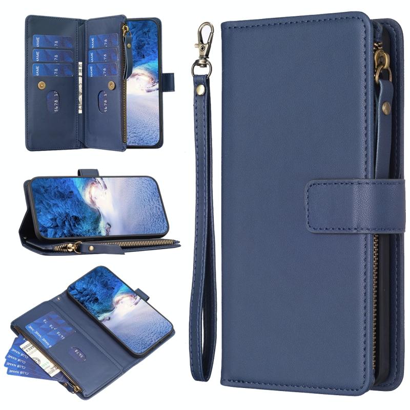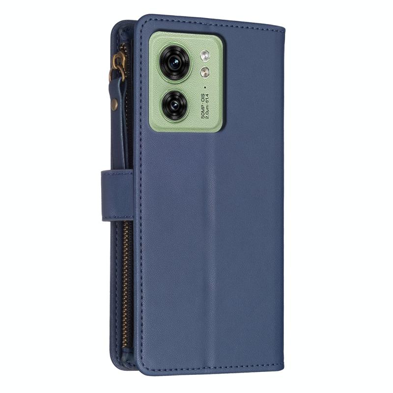 Για Motorola Edge 40 Θήκη Τηλεφώνου από Δέρμα με Φλις και Φερμουάρ, με 9 Θήκες Καρτών (Μπλε)