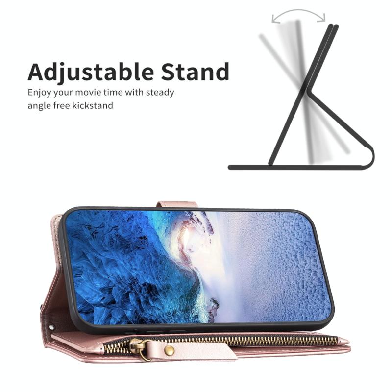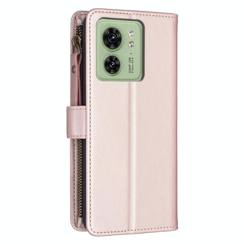 Για Motorola Edge 40 Θήκη Τηλεφώνου από Δέρμα με Φλις και Φερμουάρ, με 9 Θήκες Καρτών (Ροζ χρυσός)