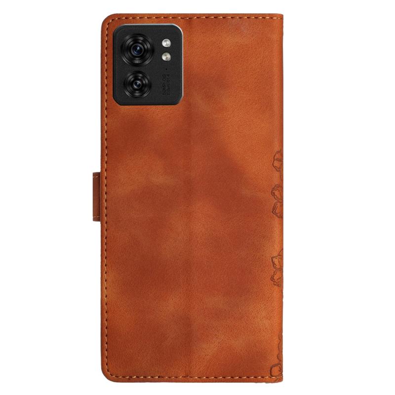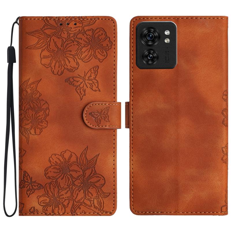 For Motorola Edge 40 Cherry Blossom Butterfly Skin Feel Embossed PU Phone Case(Brown)