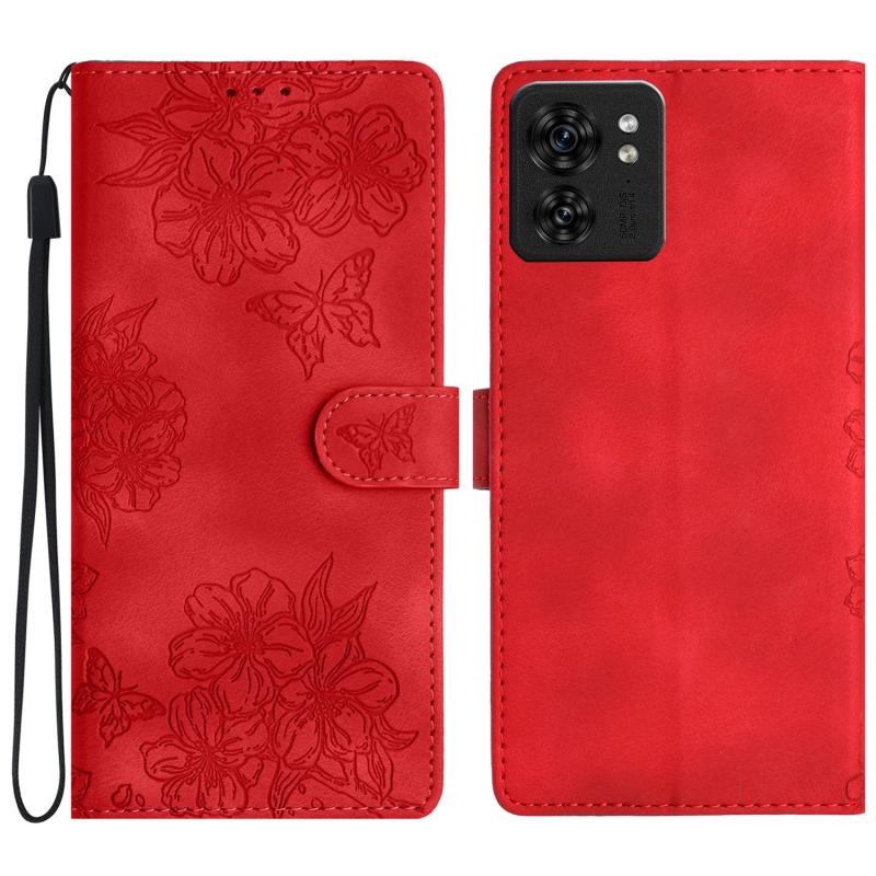 For Motorola Edge 40 Cherry Blossom Butterfly Skin Feel Embossed PU Phone Case(Red)