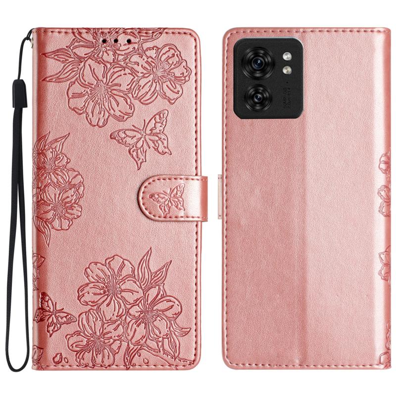 Θήκη κινητού τηλεφώνου Motorola Edge 40 Cherry Blossom Butterfly Skin Feel Embossed PU (Κόκκινη)