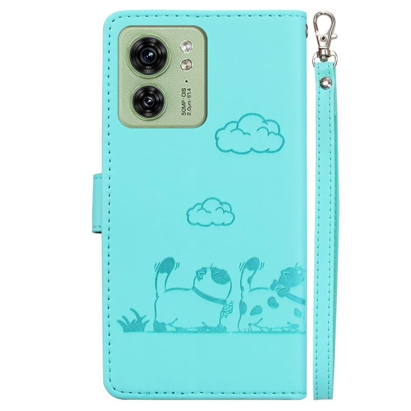 Θήκη τηλεφώνου από δέρμα με χαριτωμένες γάτες RFID για Motorola Edge 40 (Χρυσό Ρόδι)