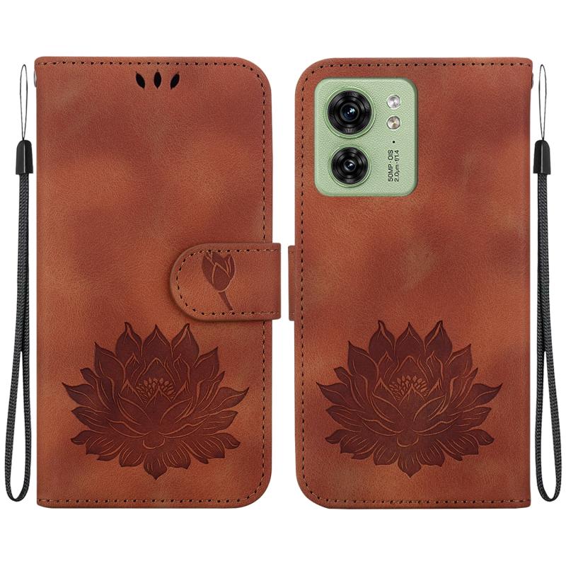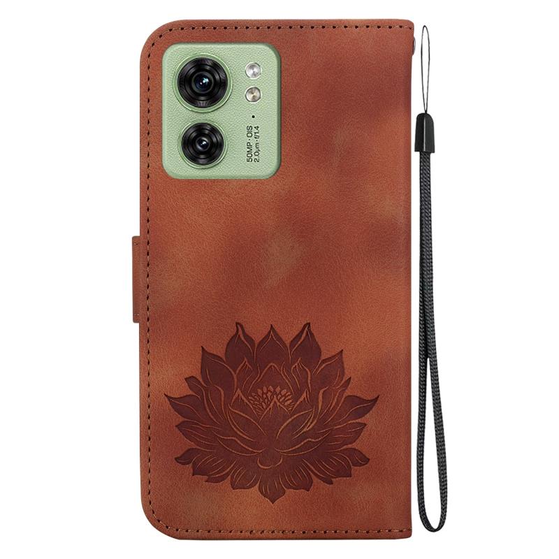 For Motorola Edge 40 Lotus Embossed Leather Phone Case(Brown)