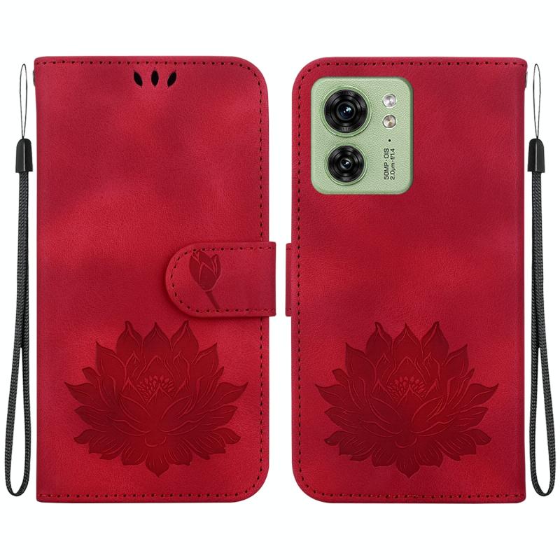 For Motorola Edge 40 Lotus Embossed Leather Phone Case(Red)