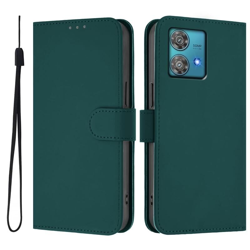 Για Motorola Edge 40 Neo 5G Skin Feel Solid Color Leather Phone Case με κορδόνι (σκούρο πράσινο)