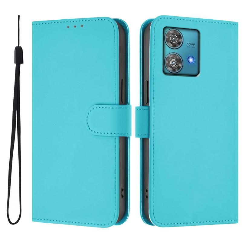 Για Motorola Edge 40 Neo 5G Skin Feel Solid Color δέρμα τηλέφωνο υπόθεση με κορδόνι (Lake Blue)