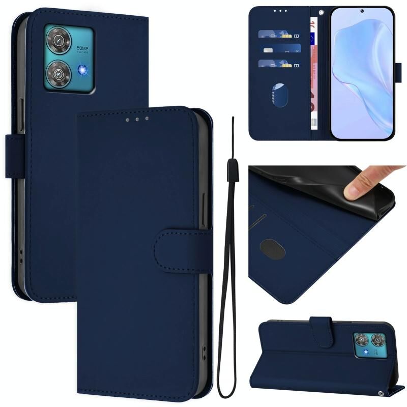 Για Motorola Edge 40 Neo 5G Skin Feel Solid Color Leather Phone Case με κορδόνι (Navy Blue)