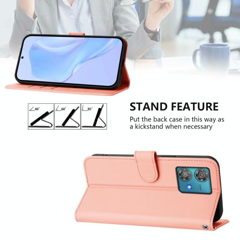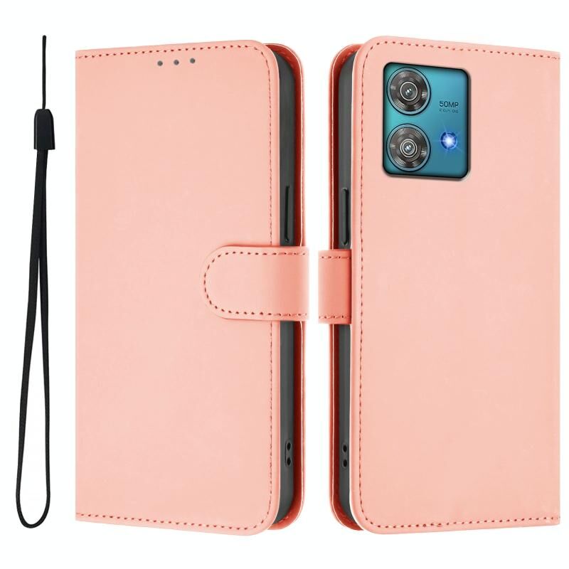 Για Motorola Edge 40 Neo 5G Skin Feel Solid Color δέρμα τηλέφωνο υπόθεση με κορδόνι (ροζ)