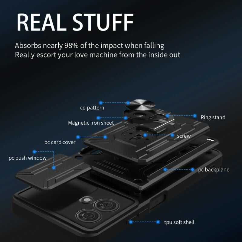 Για Motorola Edge 40 Neo 5G Συρόμενη θήκη τηλεφώνου Camshield TPU + PC με υποδοχή κάρτας (Κόκκινο)