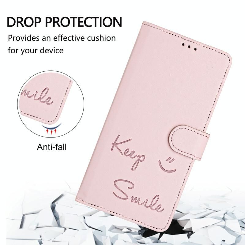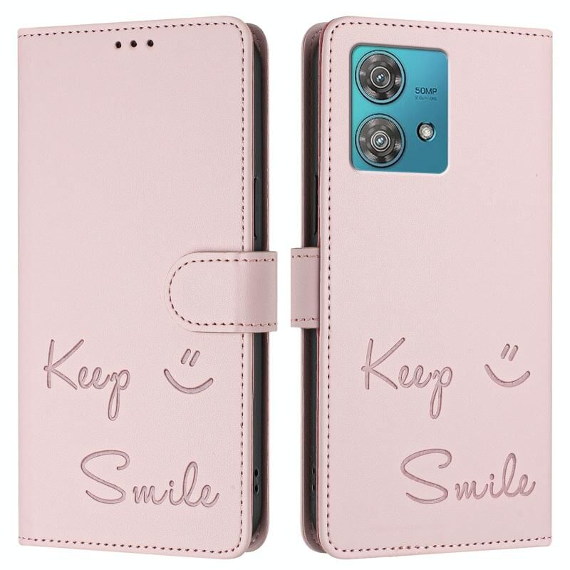Θήκη τηλεφώνου δερμάτινη με ανάγλυφο χαμόγελο και RFID για Motorola Edge 40 Neo 5G (Ροζ)