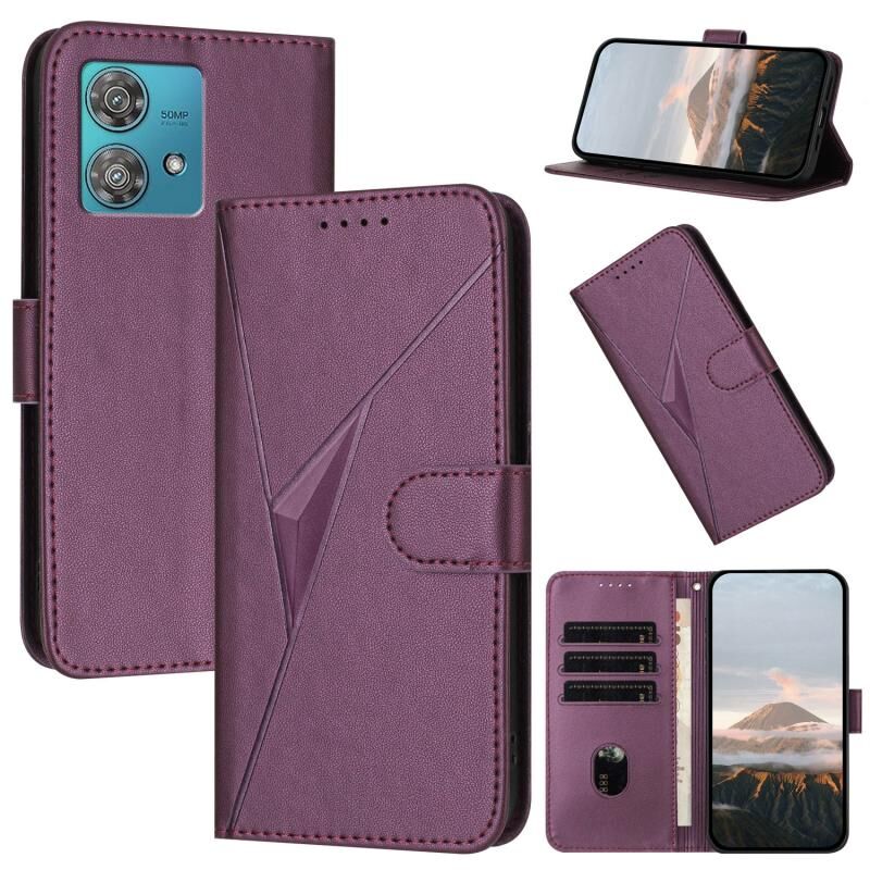 Για Motorola Edge 40 Neo 5G Τρίγωνο μοτίβο αγκράφα κούμπωμα δερμάτινη θήκη τηλεφώνου (Σκούρο μωβ)