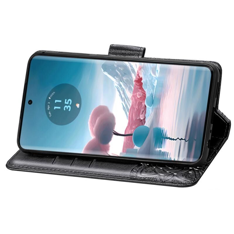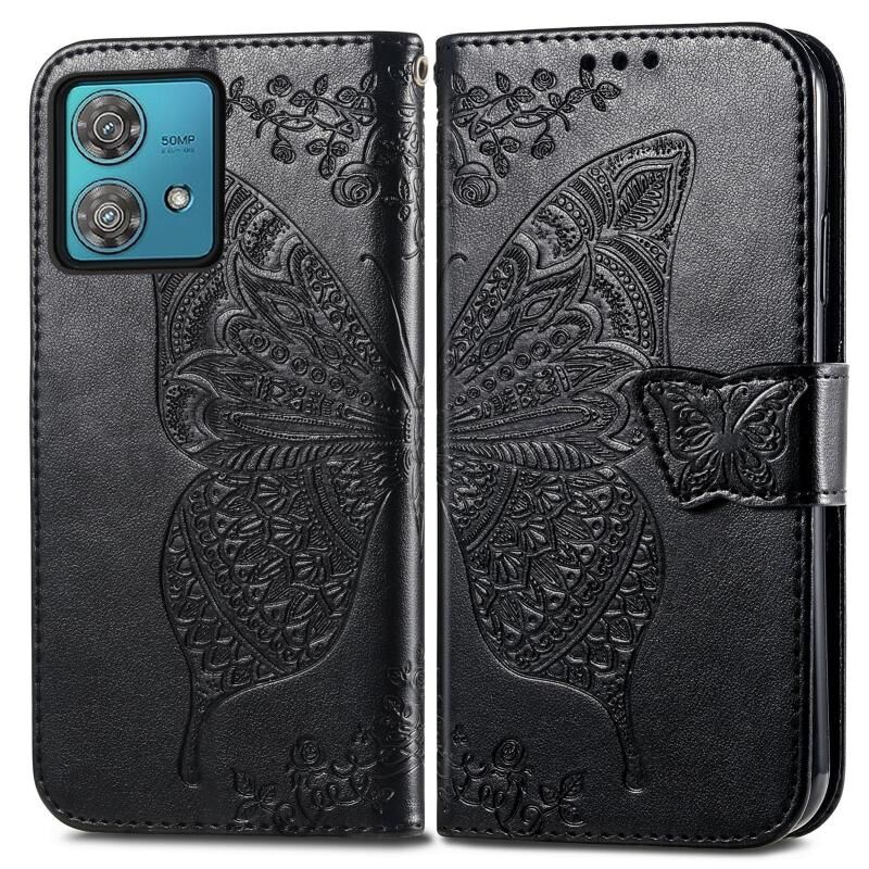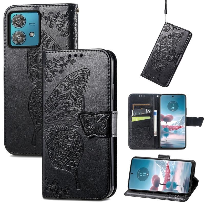 Θήκη τηλεφώνου δερμάτινη ανάγλυφη με σχέδιο πεταλούδας και λουλουδιών για Motorola Edge 40 Neo (Μαύρο)