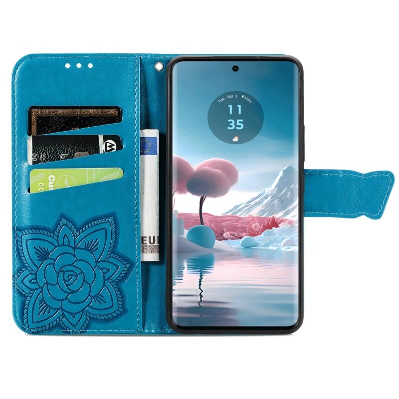 Θήκη τηλεφώνου δερμάτινη ανάγλυφη με σχέδιο πεταλούδας και λουλουδιών για Motorola Edge 40 Neo (Μαύρο)