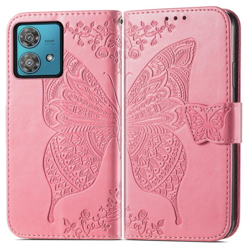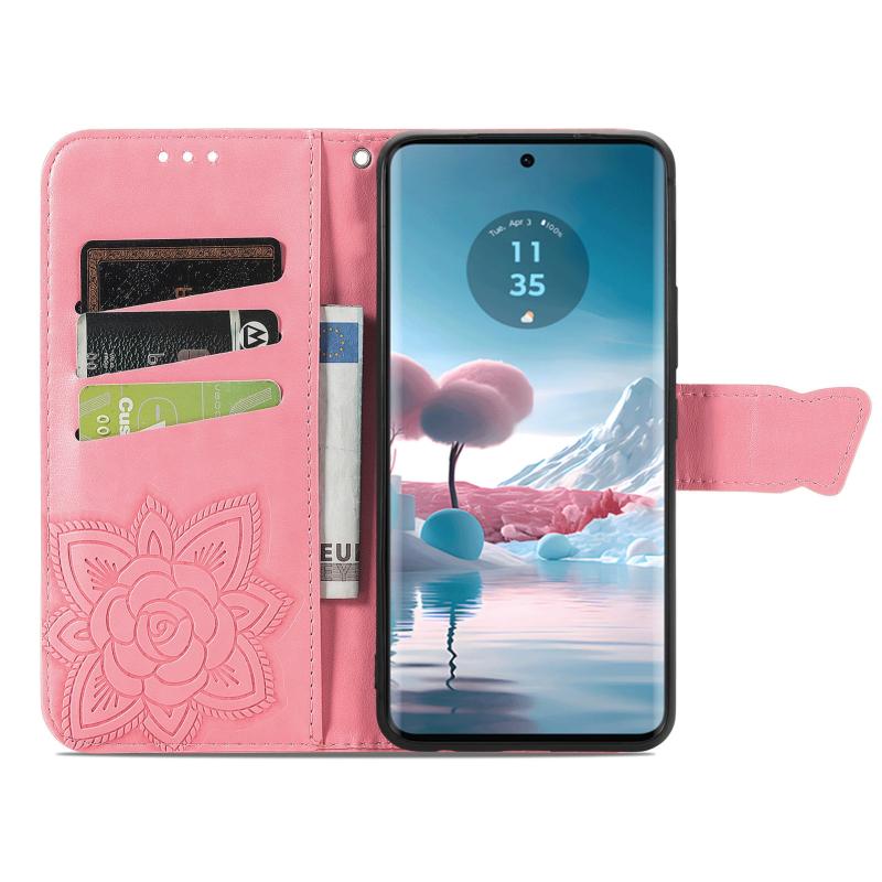 For Motorola Edge 40 Neo Butterfly Love Flower Embossed Leather Phone Case(Pink)