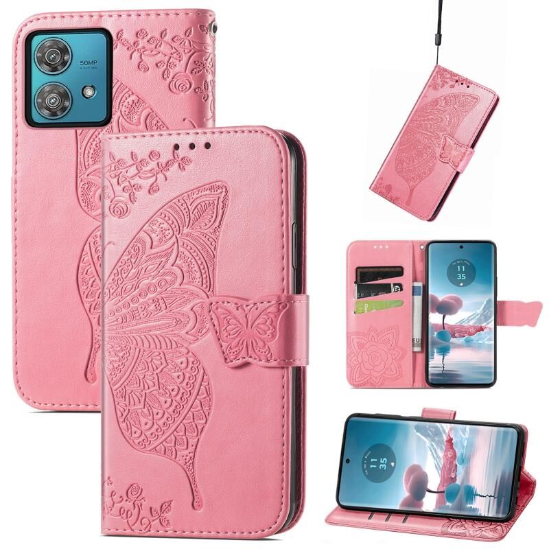 Θήκη τηλεφώνου δερμάτινη ανάγλυφη με σχέδιο πεταλούδας και λουλουδιών για Motorola Edge 40 Neo (Μαύρο)