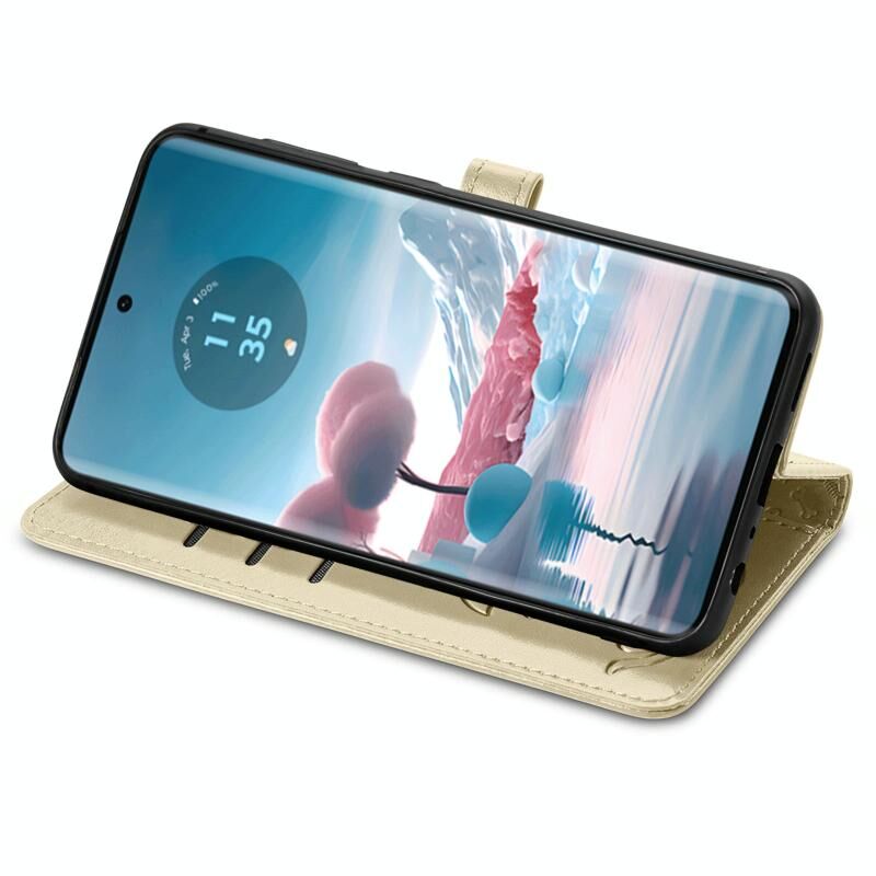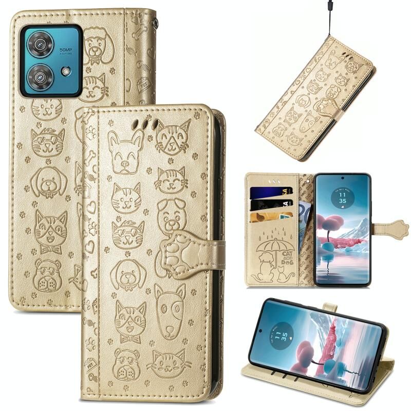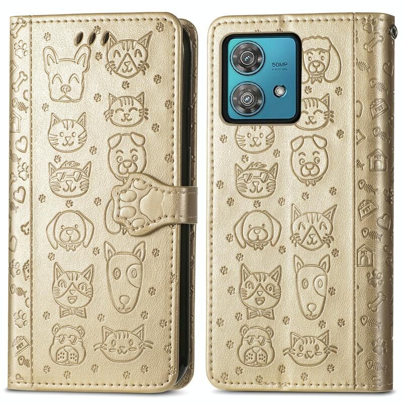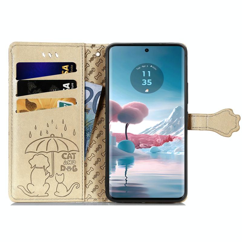 Θήκη Δερμάτινη με Χαρακτά Embossed Γάτας & Σκύλου για Motorola Edge 40 Neo (Χρυσό)