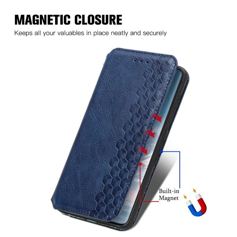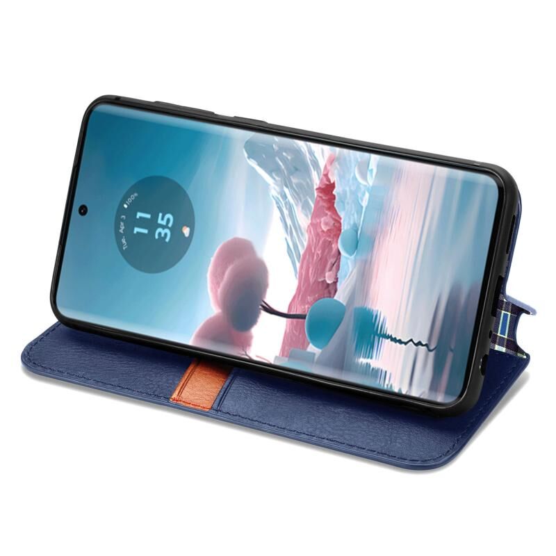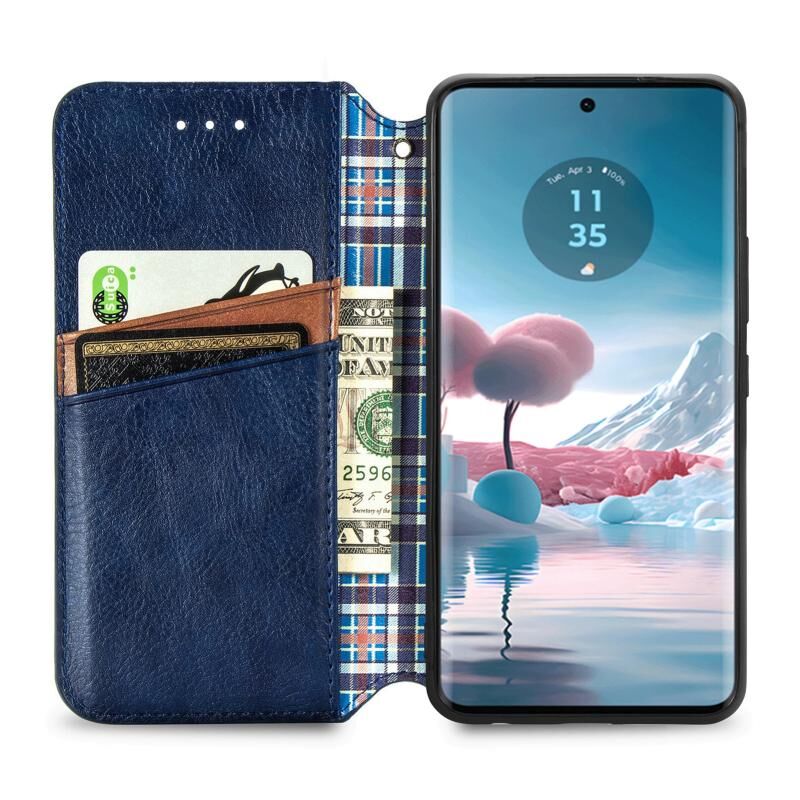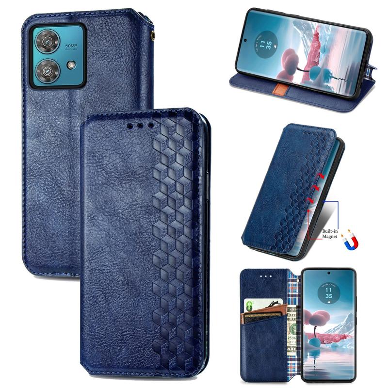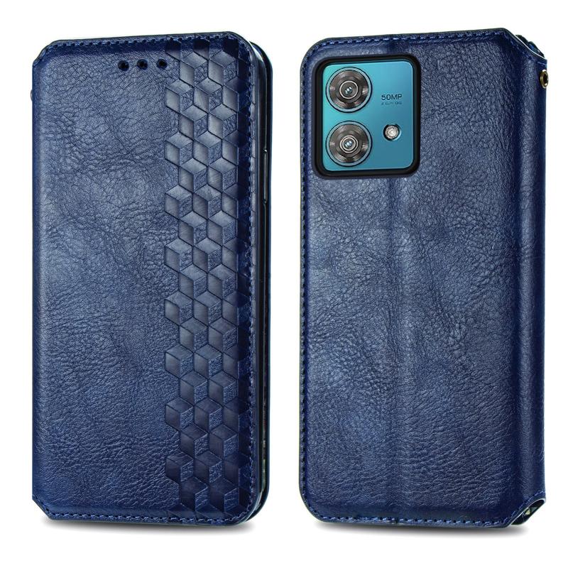 Θήκη Δερμάτινη Μαγνητική Motorola Edge 40 Neo Cubic Grid Pressed (Μπλε)