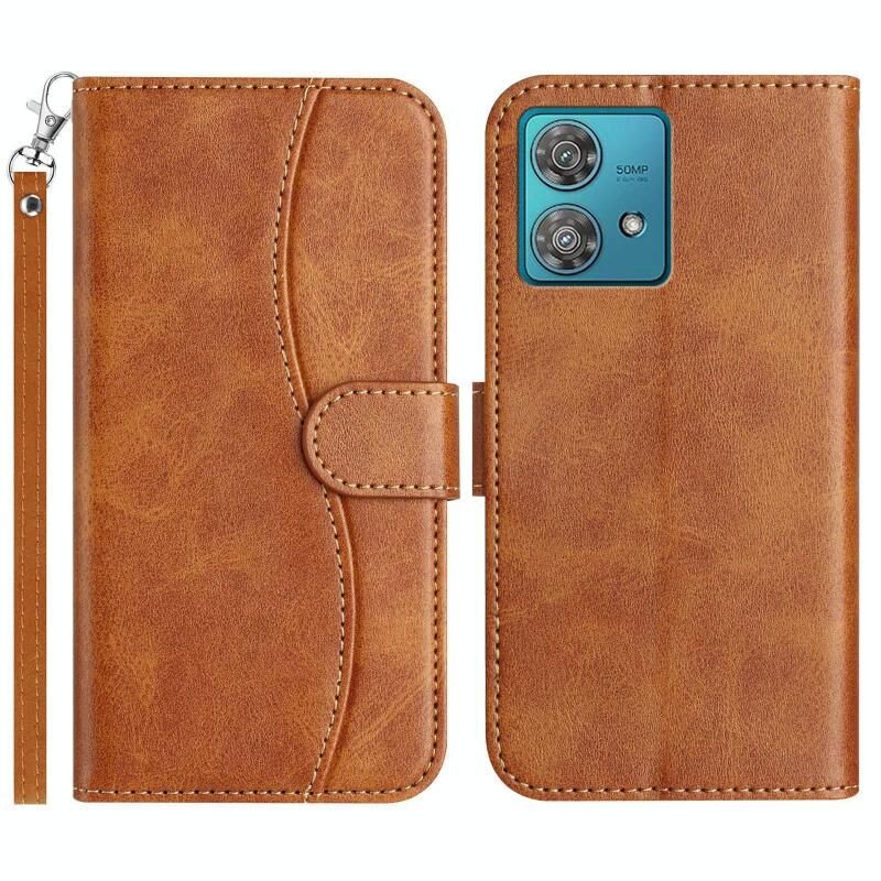 For Motorola Edge 40 Neo Dual-Folded S-shape Leather Phone Case(Brown)