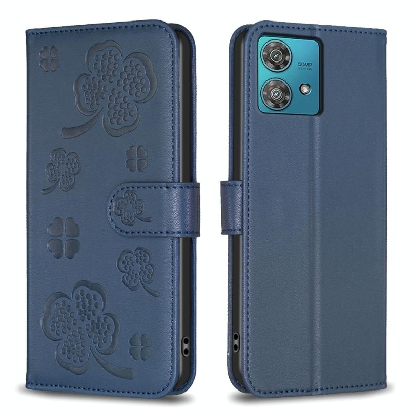 For Motorola Edge 40 Neo Four-leaf Embossed Leather Phone Case(Blue)