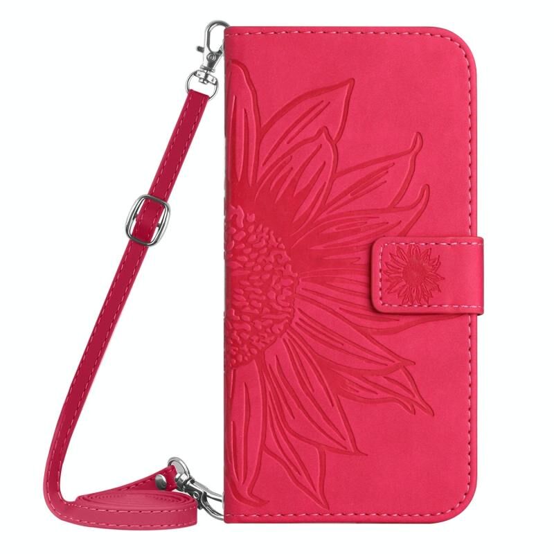 Για Motorola Edge 40 Neo HT04 Skin Feel Sun Flower ανάγλυφο Flip δερμάτινη θήκη τηλεφώνου με κορδόνι (Rose Red)