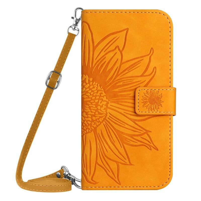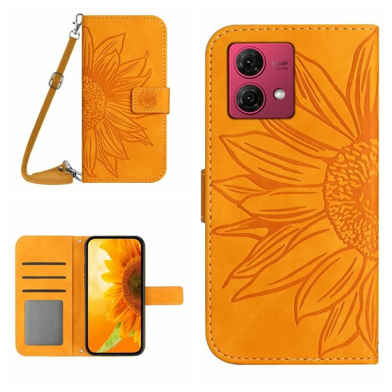 Για Motorola Edge 40 Neo HT04 Skin Feel Sun Flower ανάγλυφο Flip δερμάτινη θήκη τηλεφώνου με κορδόνι (κίτρινο)