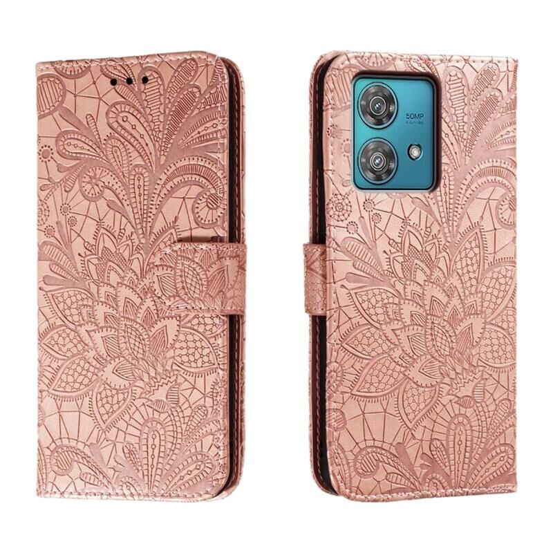 Θήκη τηλεφώνου από δέρμα με πτυσσόμενο καπάκι για Motorola Edge 40 Neo με ανάγλυφο σχέδιο Λουλουδιού Δαντέλας (Γκρι)
