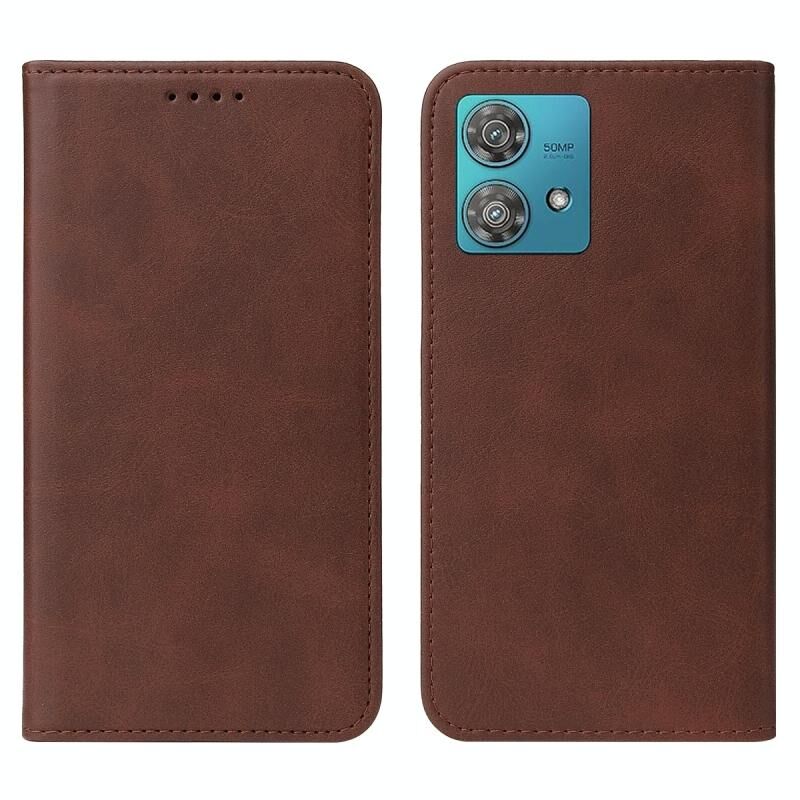 Για Motorola Edge 40 Neo Μαγνητικό κλείσιμο δερμάτινη θήκη τηλεφώνου (καφέ)