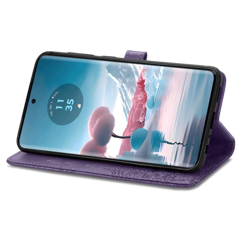 Θήκη τηλεφώνου από δέρμα με ανάγλυφο σχέδιο Mandala Flower για Motorola Edge 40 Neo (Μαύρο)