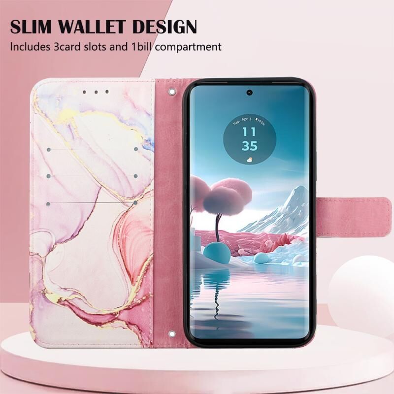 Θήκη τηλεφώνου από δέρμα με σχέδιο μαρμάρου για Motorola Edge 40 Neo PT003 (Ροζ, Μωβ, Χρυσό)