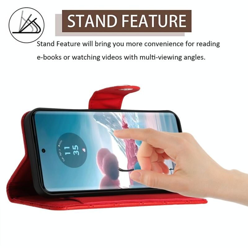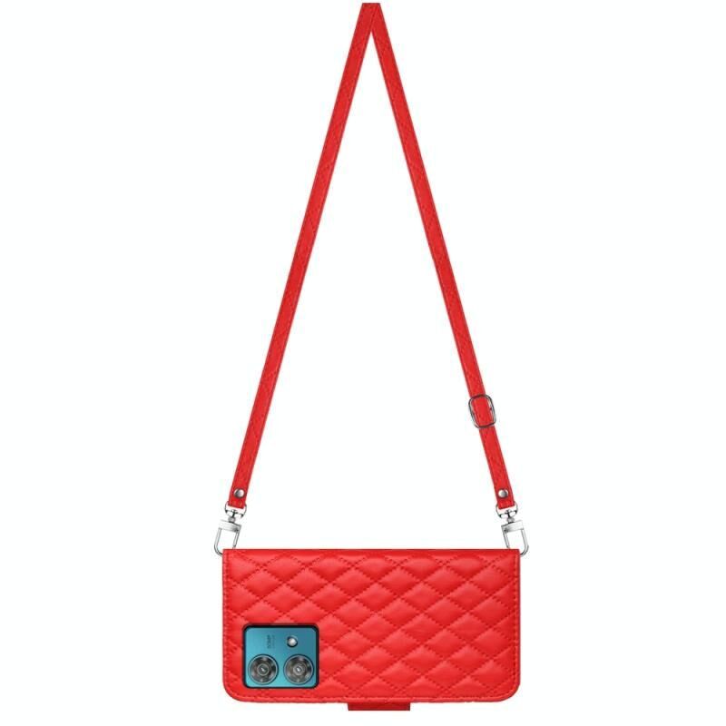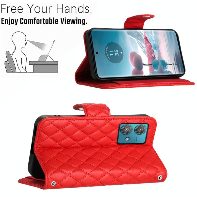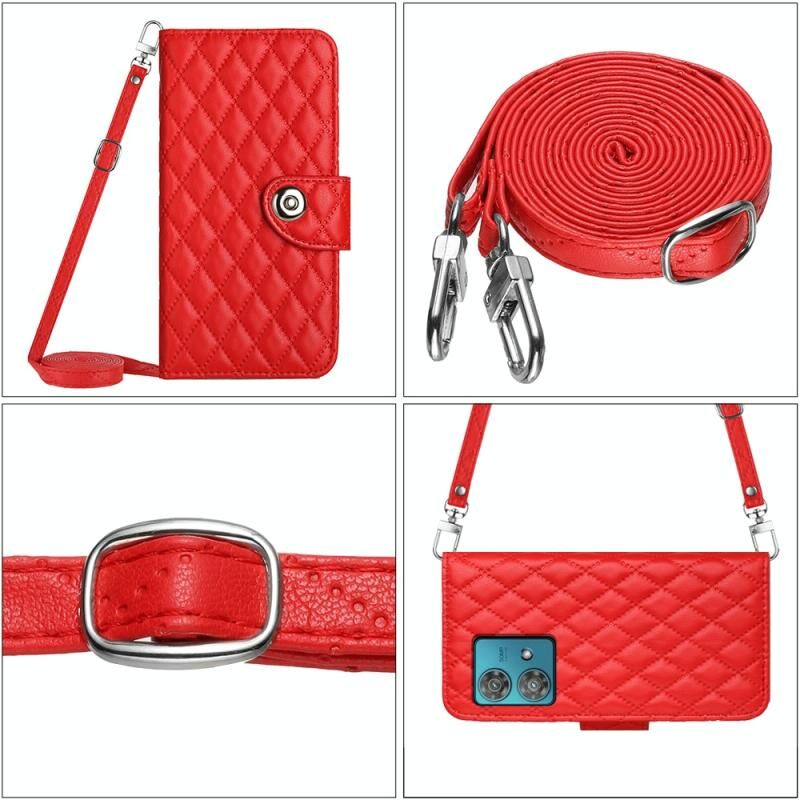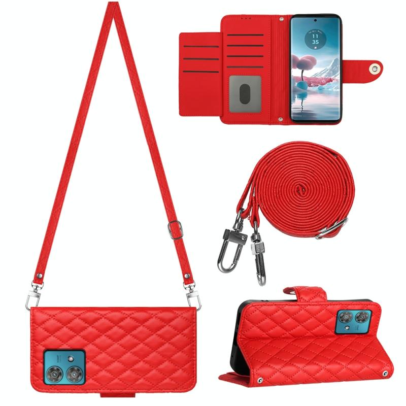 For Motorola Edge 40 Neo Rhombic Texture Flip Leather Phone Case with Long Lanyard(Red)