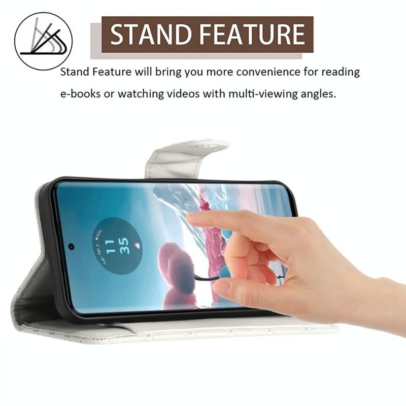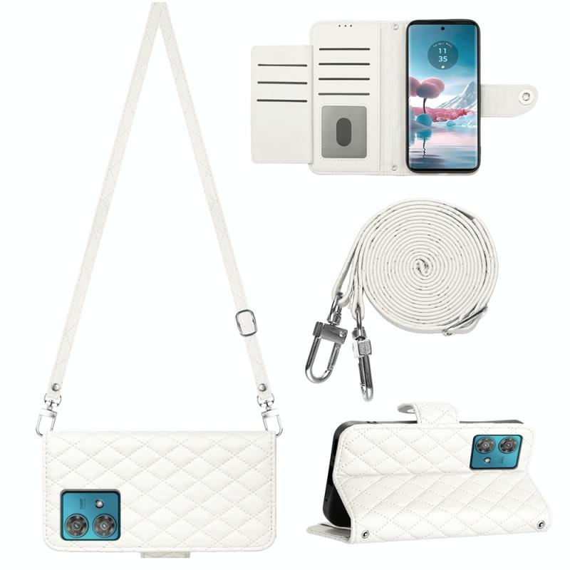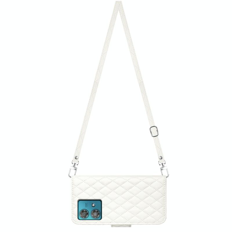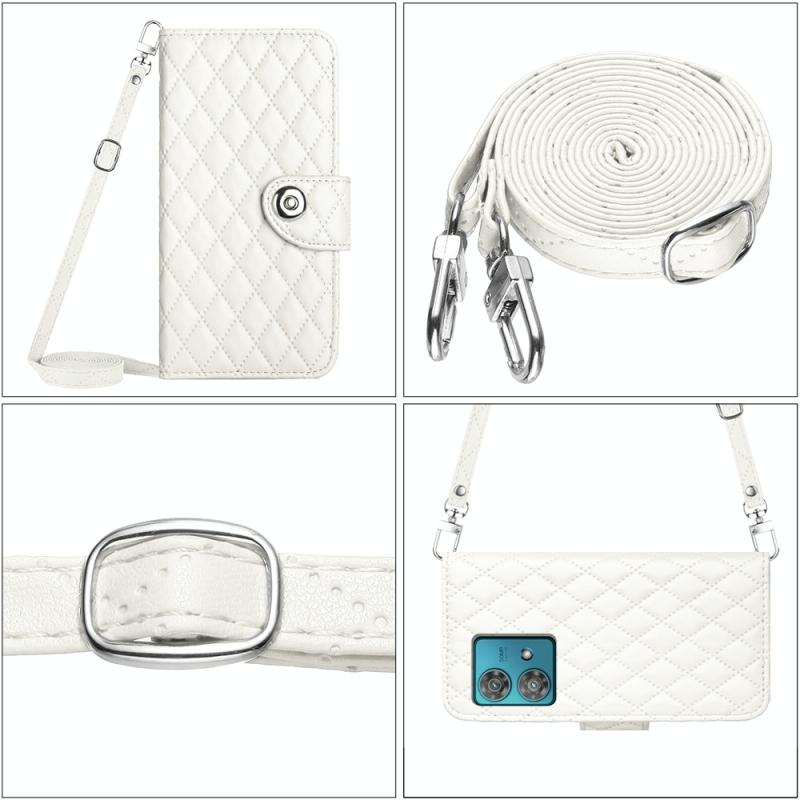 For Motorola Edge 40 Neo Rhombic Texture Flip Leather Phone Case with Long Lanyard(White)