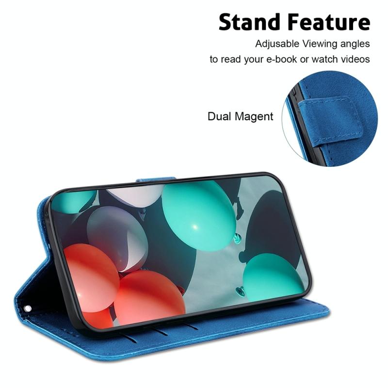 Θήκη τηλεφώνου από δέρμα με ανάγλυφο σχέδιο σε σχήμα επτά για Motorola Edge 40 Neo (Μπλε)