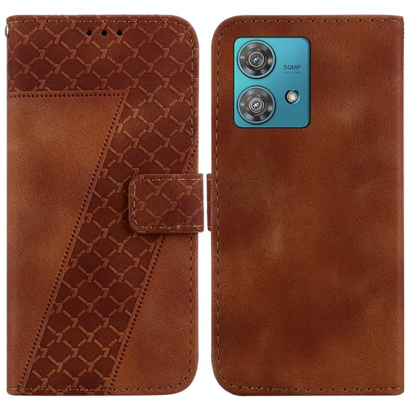 Θήκη τηλεφώνου από δέρμα με ανάγλυφο σχέδιο σε σχήμα επτά για Motorola Edge 40 Neo (Καφέ)