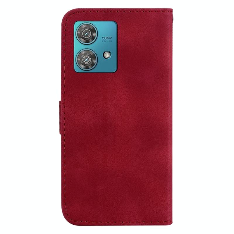 Θήκη τηλεφώνου από δέρμα με ανάγλυφο σχέδιο σε σχήμα επτά για Motorola Edge 40 Neo (Κόκκινο)